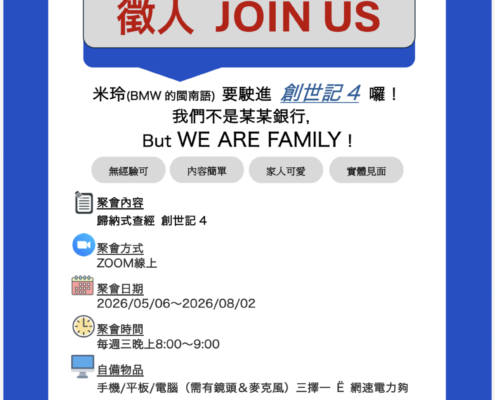 歡迎您的加入,與我們一同經歷豐盛主恩。